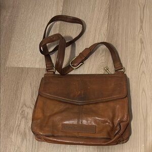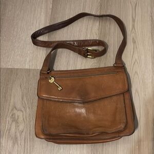 Stylish brown leather crossbody bag with a unique key charm. Perfect for everyday use.