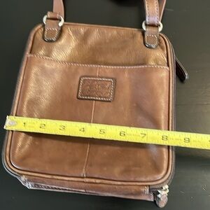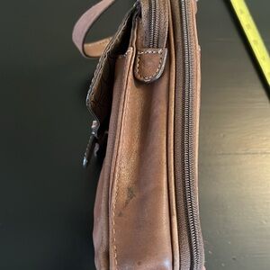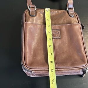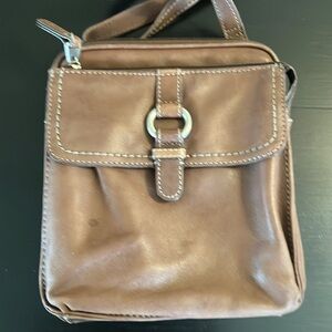 Stylish brown leather crossbody bag perfect for everyday use. Durable and versatile, this bag complements any outfit. Good condition a couple imperfections you can see in the photos. I do not have the hanging key tag with it.