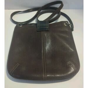 The Fossil Brown Leather Crossbody Purse is a stylish and versatile accessory designed for women. Made from high-quality leather with a solid brown exterior, this purse features a crossbody style with an antiqued brass hardware accent. The fabric lining in matching brown adds a luxurious touch to this functional and fashionable piece. Perfect for everyday use, this purse from the Fossil Key Per collection is a must-have for any fashion-forward woman looking for a chic and practical accessory. There is one little Nick in the seam as shown in the last picture. Not that noticeable at all.