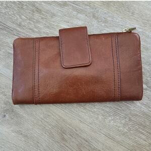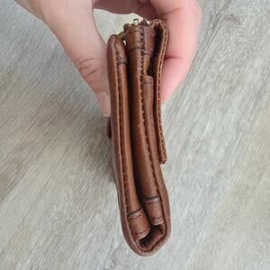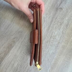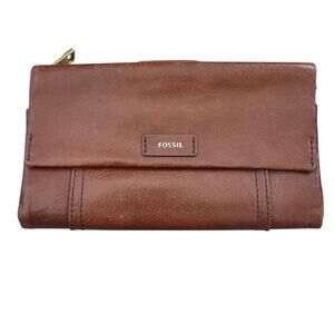 Fossil Brown Leather Ellis Clutch Envelope Wallet Minimalist Casual Travel Basic