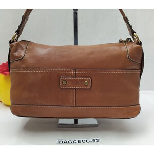 Fossil Brown Leather Front Pockets Zipper Closure Hobo Shoulder Bag