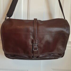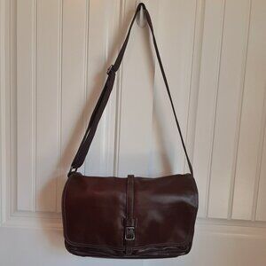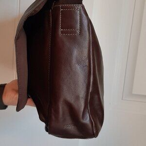 Fossil Brown Leather Messenger Briefcase Crossbody Bag (Flawed)