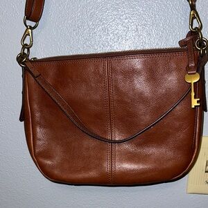 Fossil Brown Leather Shoulder Bag with Colorful Accents