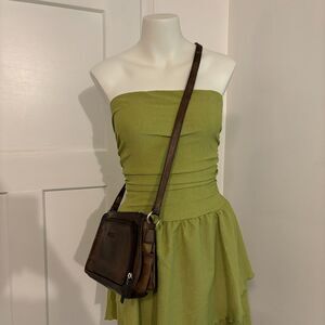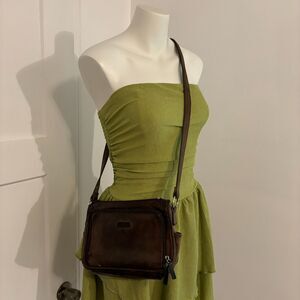 Fossil Brown Leather Small Neutral Academia Crossbody Bag