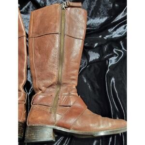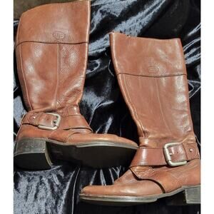 Fossil Brown Leather Tall Side Zip Buckle Boots Women's size 7.5M