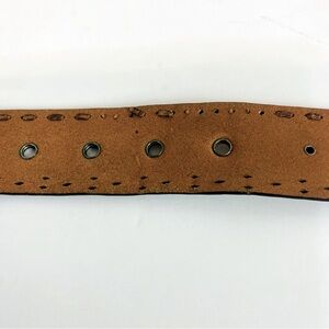 Fossil Brown Leather Tooled Rhinestone Studded Belt Size L