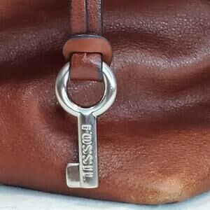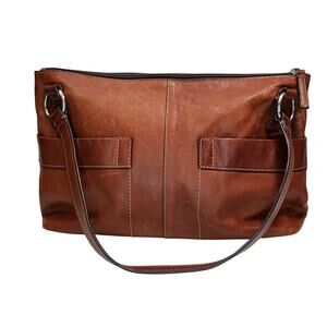 Fossil Brown Leather Tote Bag Zip Closure 75082 Pockets Double Strap 8 in x 14 in.
