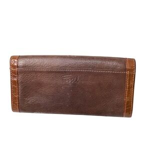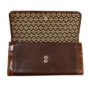 Fossil Brown Leather Wallet Clutch Snap Closure Floral Interior EUC