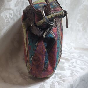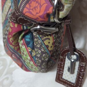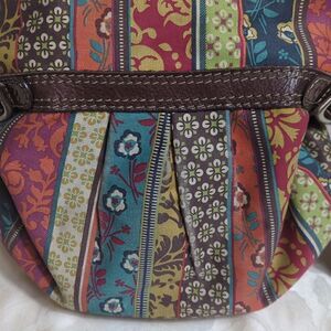 Fossil Brown Leather and Fabric Key Crossbody Boho Bag