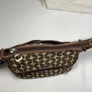 Fossil Brown Logo Canvas Crossbody Shoulder Bag