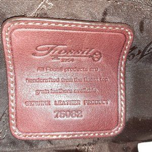 This beautiful brown pebble leather satchel bag is like new. It has two outside pockets, one on each end of the bag. It also has three sections. Two of which close with a magnetic snap and one that closes with a zipper. The straps are connected to the bag with reinforced leather tabs, and those are studded to the bag with silver studs. A cute little Fossil Key charm hangs from one of the straps. The hardware is silver colored. The inside is lined with dark brown satin that is imprinted with the Fossil name and logo. It's 13-inches long, 6-inches wide, 6-inches long without the straps, and with the straps, it's 16-inches high. The straps are long enough that you can put them over your shoulder. This bag is perfect for work or a casual outing on the weekend. Its original price was $189. Happy to take offers and will ship quickly, next day if the post office is open. Motivated seller.