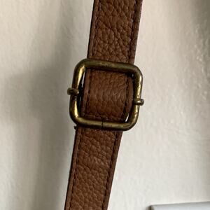 Crossbody satchel, adjustable strap, front pocket w/ zipper, large inside zipper, 2 small inside pockets. Some wear on front pocket and hardware (see closeups in photos).