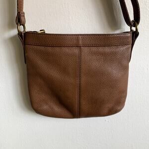 Fossil Brown Pebbled Leather Crossbody Satchel Bag Purse Adjustable Strap