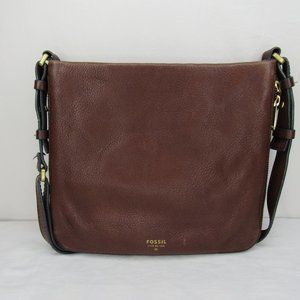 Fossil Brown Pebbled Leather PRESTON Expandable Crossbody Bag Purse