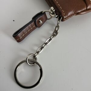 Fossil Brown Signature Leather & Canvas Mini Pouch Key Ring Wallet