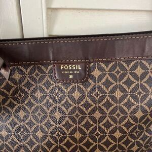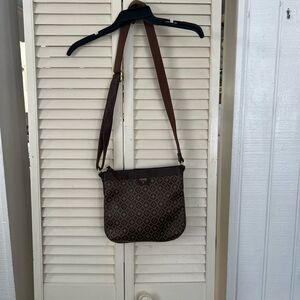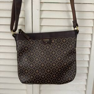 Fossil Brown Crossbody Bag with Adjustable Strap and Geometric Pattern