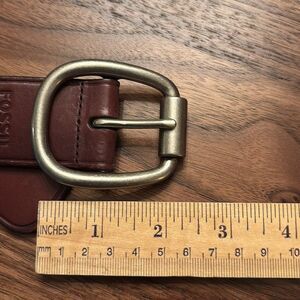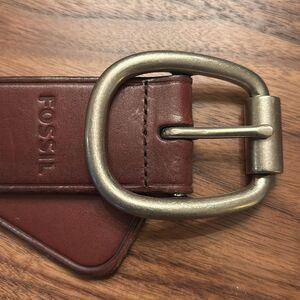 EUC (Appears new) Fossel Leather Belt with Brushed Silver Buckle. Measures 40"; Buckle 2.25".