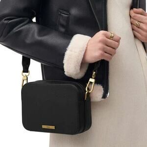 Fossil Bryce Small Crossbody Camera Bag Black Leather Gold Hardware NWT $180
