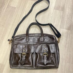 Fossil Buckner Brief Briefcase Bag Brown Cognac Leather Laptop Men's Bag Unisex