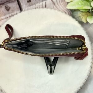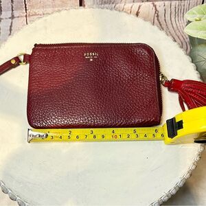 Fossil Burgundy Wine Pebbled Genuine Leather Tasseled Wristlet Wallet Size 6”x4”