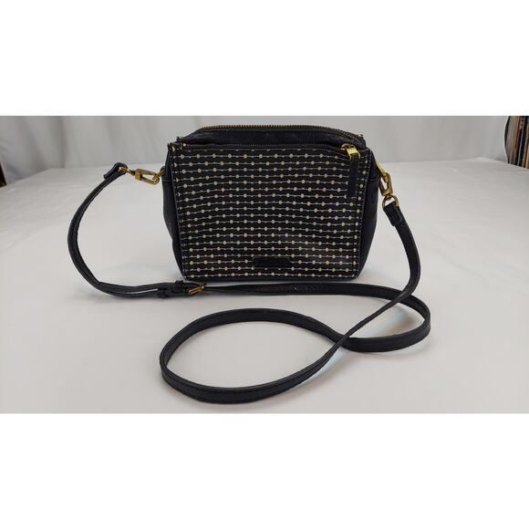 Fossil Campbell Mini Crossbody Black White Stripe Purse Adjustable Strap