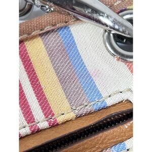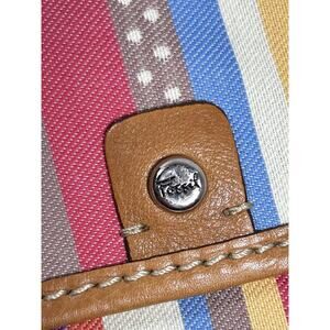 Fossil Canvas Fabric & Leather Crossbody Bag Purse Multicolor Geometric Stripe