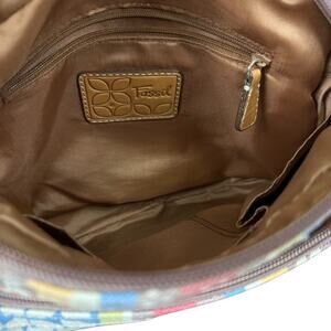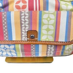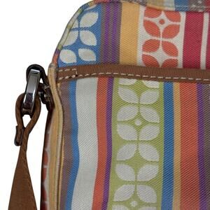 Fossil Canvas Leather Trim Colorful Crossbody Shoulder Bag Messenger Purse