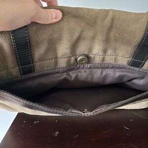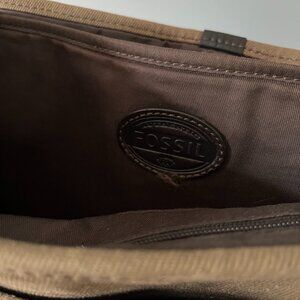 Fossil Canvas Messenger Bag in tan/brown color. In good condition, inner and outer pockets. Size 10" x 16.5".