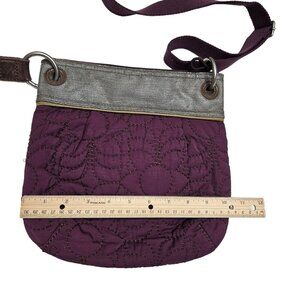 Fossil Canvas & Quilted Crossbody Bag Adjustable Strap Multi-Pocket Purple Gray
