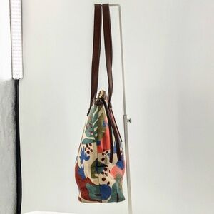 Fossil Canvas Tote Tan Floral Leaf Print Zip Top Medium Textile Shoulder Bag