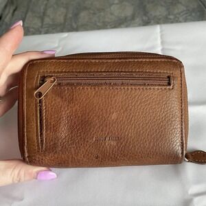 Fossil Caramel Brown Soft Pebbled Leather Wallet Zip & Snap Closure ID Holder