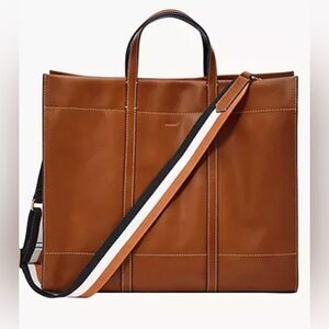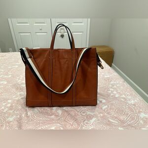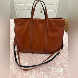 This leather tote boasts 2 slide pockets, 3 credit card slots and an adjustable, detachable shoulder strap