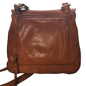Fossil Carson Leather Flap Organizer Crossbody ZB5057, 8.5”W x 6.5”H x 2.5”D. Great condition—no major wear or tears, there is a dark spot on the front, see photos for wear.
