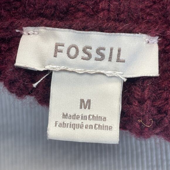 Fossil Cashmere Wool Blend Women M Cardigan Sweater Ribbed Knit Maroon Red Cozy
