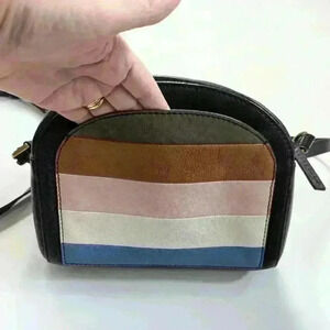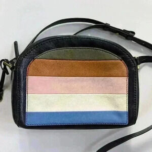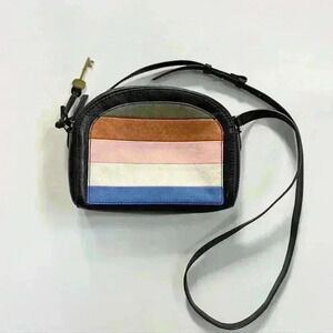 Fossil Chelsea Navy Rainbow Striped Leather Crossbody Bag Purse.