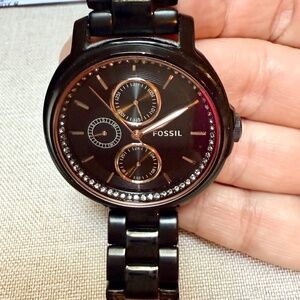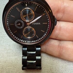 Fossil Chelsey Multifunction Black IP Stainless Steel Women’s Watch NEW BATTERY