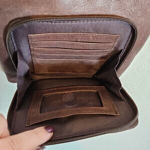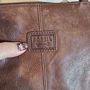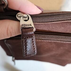 Fossil Chocolate Brown Leather Crossbody Purse Classic Slim 8x8 Casual Boho Chic