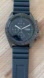 Description: Beautiful black chronograph dial with date window. Rotating bezel. Blue, gray, and luminous hands and markers. Blue silicone strap. Just cleaned and serviced with a new battery installed. Works well!