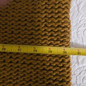 This is a very soft chunky knit infinity scarf by Fossil. It has the metal logo Fossil key attached. It is 30.5" long and 9" wide. The color is Camel. A much needed accessory for the cold days ahead.