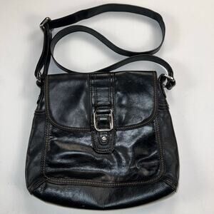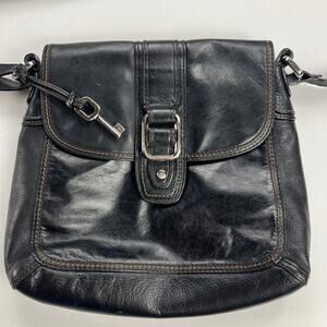 Fossil Claudia Black Leather Versatile Shoulder/Crossbody Bag Flap Pockets