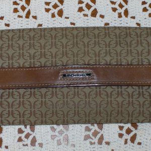 Fossil Clutch Wallet Brown Logo Leather Jacquard Organizer BOTTOM DOLLAR!!!
