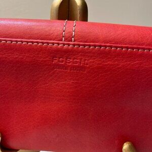 Fossil Clutch Wallet Smooth Soft Red, Burgundy, Leather Snap Close