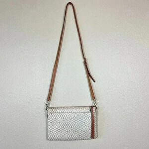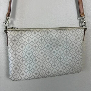 Fossil Coated Canvas Leather Sadie Crossbody Bag Bone White Brown