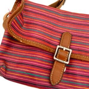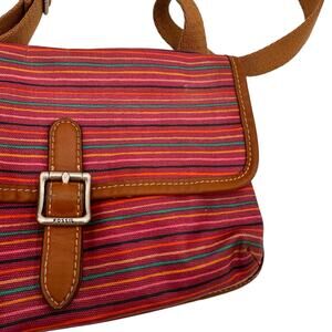 Fossil Coated Canvas Leather Striped Crossbody Purse