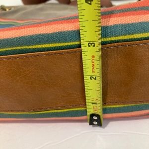 Fossil Coated Canvas Striped Crossbody Bag Blue Tan Coral