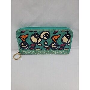 Fossil Coated Canvas Wallet Floral Zip Around Multicolored 8x4.5