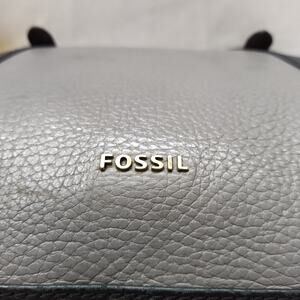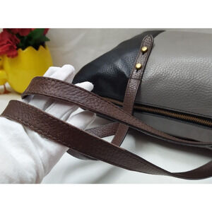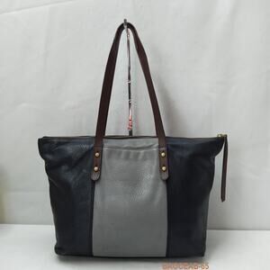Fossil Colorblock Black Gray Pebbled Leather Double Handle Satchel Shoulder Bag