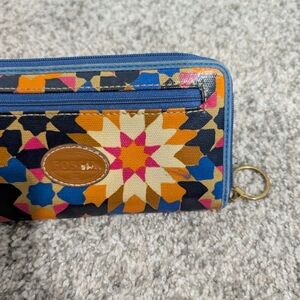 Fossil Colorful Geometric Print Canvas Zippered Wallet