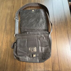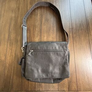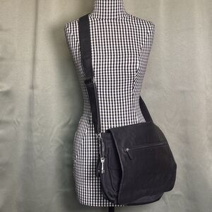 Fossil Commuter Leather Outer Nylon Inner Crossbody Messenger Bag Black