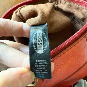 Fossil Coral Orange 100% Cow Hide Leather Square Crossbody Zipper Top Purse Bag
